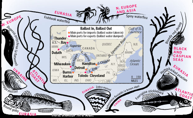 Non-indigenous species carried in ballast water (graphic by Patterson Clark of the WPost)